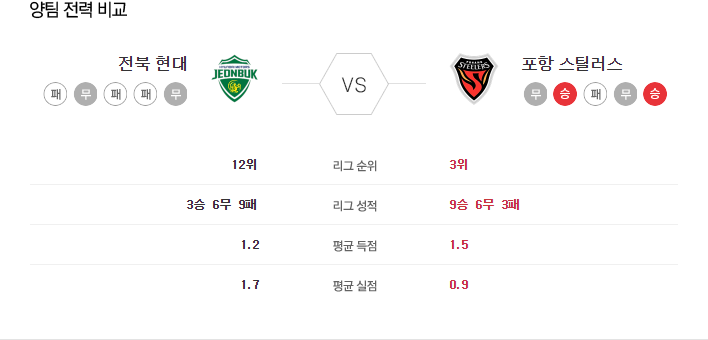 6월 26일 K리그 전북 VS 포항 타카짱의 경기 예측 분석