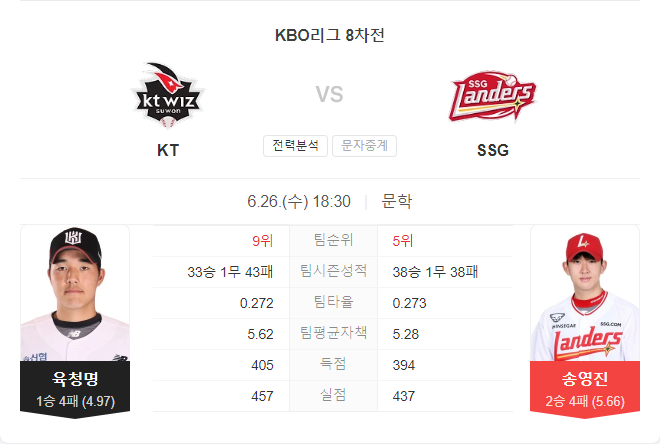 | 6월 26일 KBO 프로야구 두산 베어스 VS 한화 이글스 타카짱의 경기 예측 분석 (0) | 2024.06.26 |