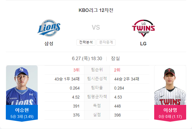 | 6월 27일 KBO 프로야구 두산 베어스 VS 한화 이글스 타카짱의 경기 예측 분석 (0) | 2024.06.27 |