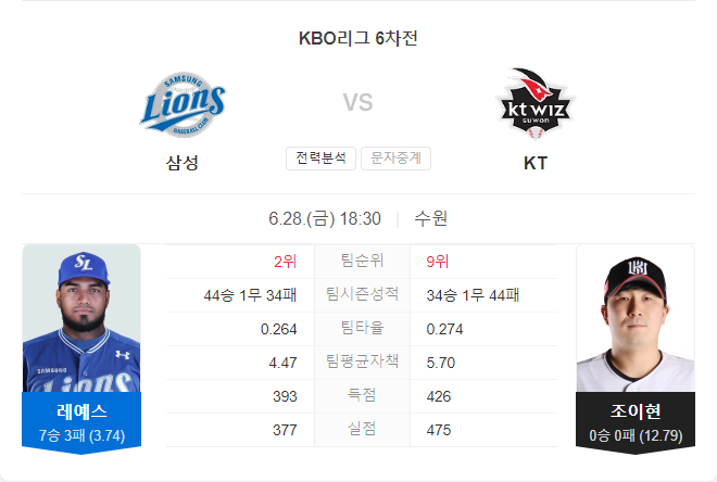 따라서, 삼성 라이온즈가 이번 경기에서 승리할 가능성이 높습니다. 레예스의 안정적인 피칭과 불펜진의 활약이 결정적인 역할을 할 것으로 보입니다.