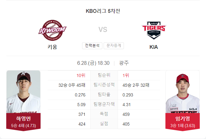키움은 불펜진의 안정화가 절실히 필요한 상황입니다. 또한, 올 시즌 기아 타이거즈를 상대로 아직 승리를 거두지 못한 점도 부담으로 작용하고 있습니다.