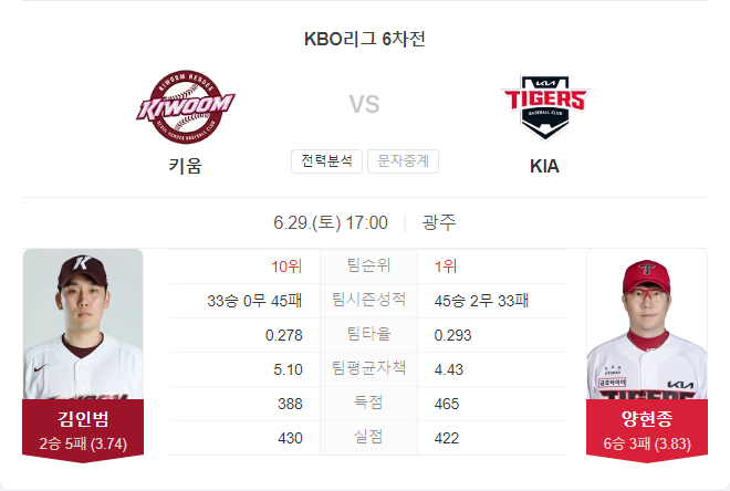 이번 경기는 키움 히어로즈의 승리가 예상됩니다. 키움은 최근 연승 행진을 이어가고 있으며, 타선과 투수진 모두 안정적인 모습을 보이고 있습니다. 반면, 기아 타이거즈는 투수진의 부진과 타선의 침묵으로 어려움을 겪고 있어 키움이 유리한 경기를 펼칠 것으로 보입니다.