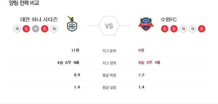 6월 29일 K리그 대전 VS 수원FC 타카짱의 경기 예측 분석