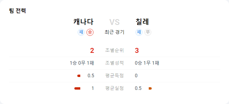 이번 경기는 양 팀 모두에게 매우 중요한 경기입니다. 캐나다는 최근 승리를 통해 자신감을 얻었고, 칠레는 강력한 수비력을 바탕으로 경기를 풀어갈 것으로 예상됩니다. 낮은 득점 경기가 예상되며, 칠레가 근소한 차이로 승리할 가능성이 높습니다.