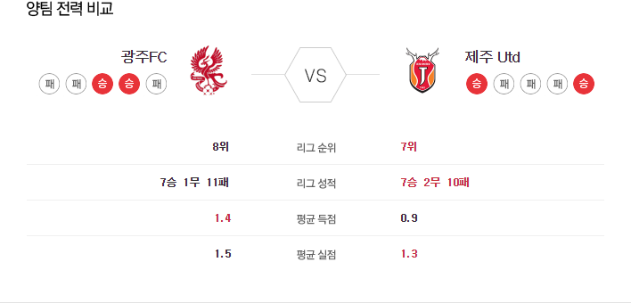 6월 30일 K리그 광주 VS 제주 타카짱의 경기 예측 분석