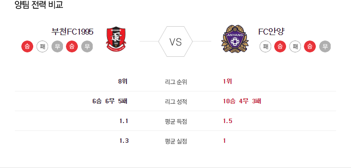 6월 30일 K리그2 부천 VS 안양 타카짱의 경기 예측 분석
