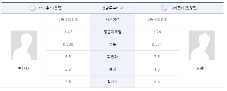 반면, 요미우리의 야마사키 이오리는 안정적인 투구를 유지하고 있으며, 지바롯데의 타선은 최근 심하게 가라앉은 상태입니다. 따라서 선발 투수와 타선에서 우위를 점하고 있는 요미우리 자이언츠가 승리에 가까울 것으로 예상됩니다.