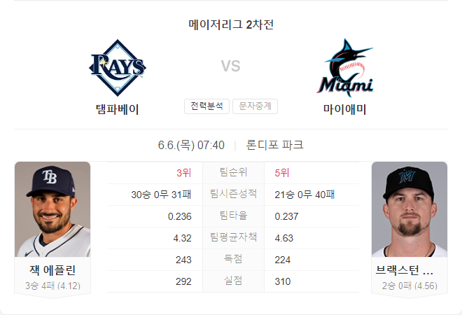탬파베이 레이스는 최근 볼티모어 오리올스와의 시리즈에서 패배했지만, 마이애미 말린스를 상대로 강한 모습을 보이고 있습니다. 마이애미 말린스는 최근 부진한 성적을 보이고 있으며, 팀의 타격과 투구 모두 불안한 모습을 보이고 있습니다.