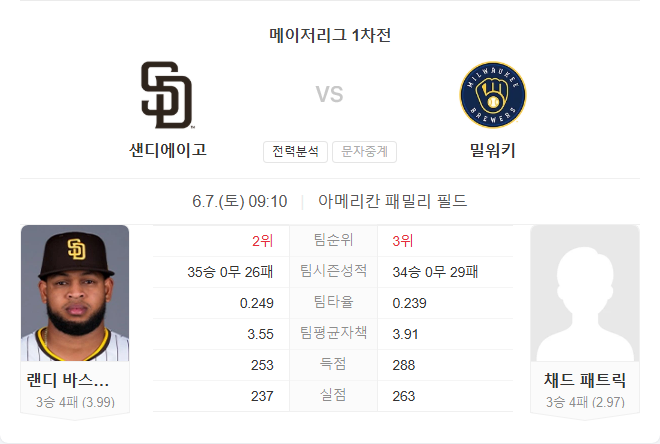 선발 채드 패트릭은 시즌 3승 4패, 평균자책점 2.97을 기록하며 안정적인 피칭을 이어가고 있습니다. 최근 3경기에서는 1.76 ERA로 더욱 안정감을 보여주고 있으며, 직전 등판에서는 필라델피아를 상대로 6이닝 2실점으로 승리를 챙겼습니다. 홈구장인 아메리칸 패밀리 필드에서는 8경기 2승 2패, 2.37 ERA로 강한 모습을 보이고 있습니다. 이번 경기에서 샌디에이고를 상대로 첫 등판이지만, 최근 흐름과 홈 강세를 고려하면 기대할 만한 투구가 예상됩니다.