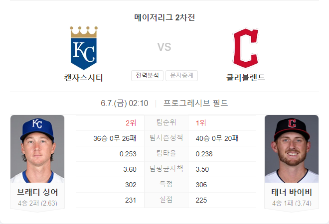 브래디 싱어는 이번 시즌 꾸준히 좋은 성적을 유지하고 있어 로열스가 우세할 것으로 보입니다. 클리블랜드는 타격이 다소 기복이 있지만, 샌들린과 앨런의 투구에 따라 경기가 좌우될 것입니다. 로열스는 좌완 투수를 상대로 강한 타격을 보여주고 있어, 이번 경기에서도 좋은 성적을 기대할 수 있습니다.
