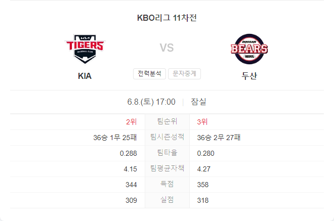 | 6월 7일 KBO 프로야구 기아 타이거즈 VS 두산 베어스 타카짱의 경기 예측 분석 (0) | 2024.06.07 |