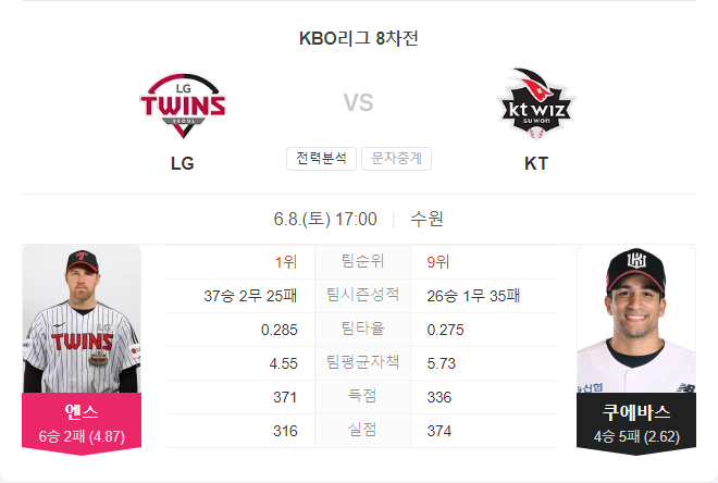 이번 경기는 양 팀 모두 불펜의 문제를 안고 있는 상황에서 선발 투수의 활약이 더욱 중요해질 것입니다. LG의 디트릭 엔스와 KT의 윌리엄 쿠에바스가 선발로 나서는데, 최근 경기에서 좋은 성적을 거둔 쿠에바스가 조금 더 유리한 위치에 있습니다.