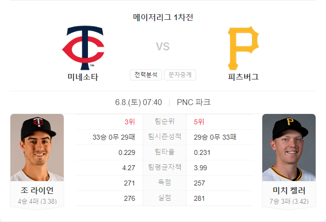 트윈스는 이번 주말 피츠버그에서 3연전 시리즈를 시작하며, 첫 경기에서는 팀의 에이스 조 라이언이 선발로 나설 예정입니다. 라이언은 이번 시즌 12경기에서 4승 4패를 기록하고 있으며, 평균자책점(ERA) 3.38과 WHIP 1.01을 자랑합니다. 그는 최근 휴스턴 애스트로스와의 경기에서 8피안타 5실점으로 부진했지만, 이번 경기에서는 반등을 노리고 있습니다.