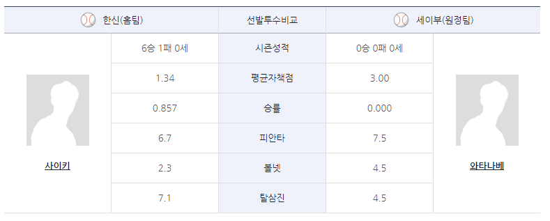 세이부 라이온스는 최근 에이스의 부진으로 인해 6연패의 늪에 빠져 있습니다. 이번 경기에서는 와타나베 유타로가 선발로 나서 시즌 첫 승에 재도전합니다. 와타나베는 1일 요미우리와의 홈 경기에서 7이닝 2실점으로 호투하며 좋은 모습을 보였지만, 야외 구장에서의 기복이 있는 것이 약점입니다.