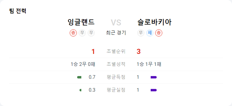 슬로바키아는 용감한 플레이를 시도하겠지만, 잉글랜드의 기술적 우위와 전술적인 강점이 경기를 지배할 가능성이 큽니다. 이번 경기는 다득점 경기가 될 가능성은 적지만, 잉글랜드가 승리할 확률이 높습니다.