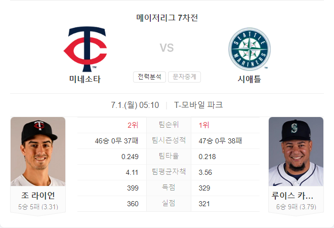 트윈스는 타격 면에서 우위를 점하고 있으며, 특히 홈런과 득점 생산에서 강력한 모습을 보이고 있습니다. 따라서, 이번 경기는 미네소타 트윈스가 승리할 가능성이 높다고 예상됩니다.