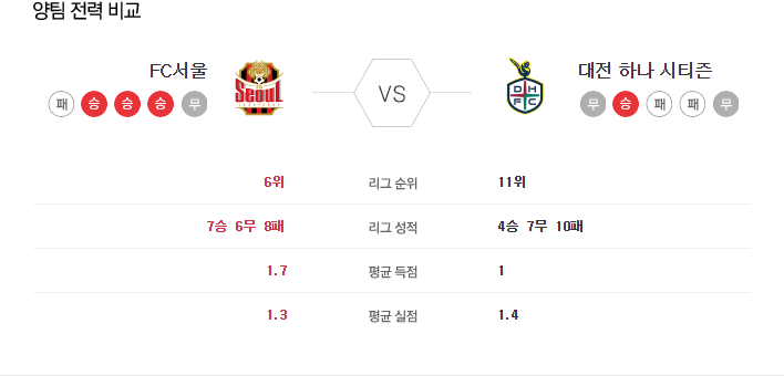 서울은 최근 5경기에서 2승 2무 1패를 기록하며 6위에 위치해 있습니다. 대전을 상대로 최근 5번의 맞대결에서 승리하지 못했으며, 특히 미드필더 장악력에서 어려움을 겪고 있습니다.