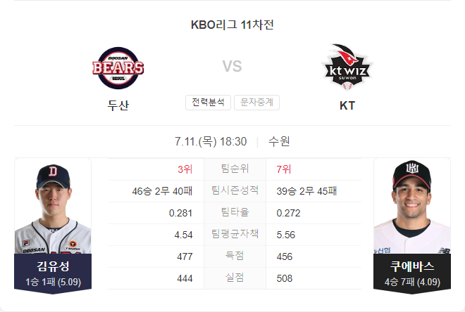 이번 경기는 두 팀 모두 강력한 공격력을 가지고 있어 치열한 경기가 예상됩니다. KT 위즈는 최근 좋은 성적을 바탕으로 자신감을 가지고 경기에 임할 것입니다. 반면 두산 베어스는 최근 부진을 떨쳐내기 위해 최선을 다할 것으로 보입니다. 하지만 최근 경기력과 홈 경기에서의 강점을 고려할 때, KT 위즈가 승리할 가능성이 높아 보입니다.