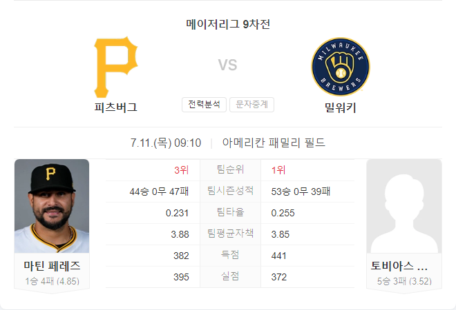 밀워키 브루어스는 이번 시즌 피츠버그 파이어리츠를 상대로 강한 모습을 보여주고 있습니다. 마르틴 페레즈는 밀워키를 상대로 부진한 기록을 가지고 있으며, 이번 경기에서도 어려움을 겪을 가능성이 높습니다. 반면, 토비아스 마이어스는 홈에서 안정적인 투구를 보여주고 있으며, 피츠버그의 부진한 타선을 상대로 유리한 위치에 있습니다.