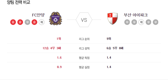 7월 14일 K리그2 안양 VS 부산 타카짱의 경기 예측 분석