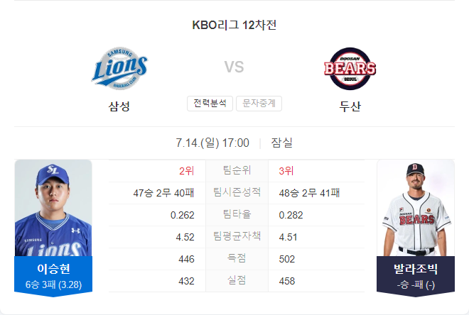삼성 라이온즈는 좌완 투수 이승현을 선발 투수로 예고했습니다. 이승현은 올 시즌 13경기에서 6승 3패, ERA 3.28을 기록하며 안정적인 성적을 유지하고 있습니다. 반면, 두산 베어스는 새 외인 투수 조던 발라조빅이 선발로 나서며 KBO리그 데뷔전을 치릅니다. 발라조빅은 미국 무대에서 불펜으로 활약한 점과 첫 등판인 점을 고려할 때 긴 이닝을 소화하기 어려울 것으로 보입니다. 따라서 두산 불펜의 역할이 중요해질 가능성이 큽니다.