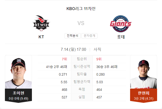 이번 경기는 KT 위즈가 유리할 것으로 예상됩니다. KT는 후반기 들어 불펜의 안정성과 타격의 집중력이 매우 뛰어나며, 최근 롯데와의 맞대결에서도 좋은 성적을 기록하고 있습니다. 반면, 롯데는 수비 실책이 잦고 타격에서도 다소 부족한 모습을 보이고 있습니다. 따라서 14일 경기에서는 KT 위즈가 불펜 및 타격에서의 우위를 바탕으로 롯데 자이언츠를 제압하고 스윕승을 달성할 가능성이 높습니다.