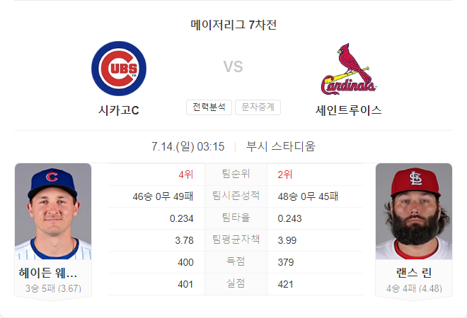 이번 경기는 세인트루이스 카디널스가 우세할 것으로 보입니다. 시카고 컵스는 최근 좋은 흐름을 보이고 있지만, 세인트루이스는 시카고와의 최근 맞대결에서 우위를 점하고 있습니다. 특히 하이든 웨스네스키는 최근 두 번의 등판에서 다소 부진한 모습을 보였으며, 세인트루이스는 이러한 점을 공략할 가능성이 큽니다. 또한, 세인트루이스는 홈에서 강한 모습을 보이고 있어, 이번 경기도 유리한 위치에서 진행될 것입니다.