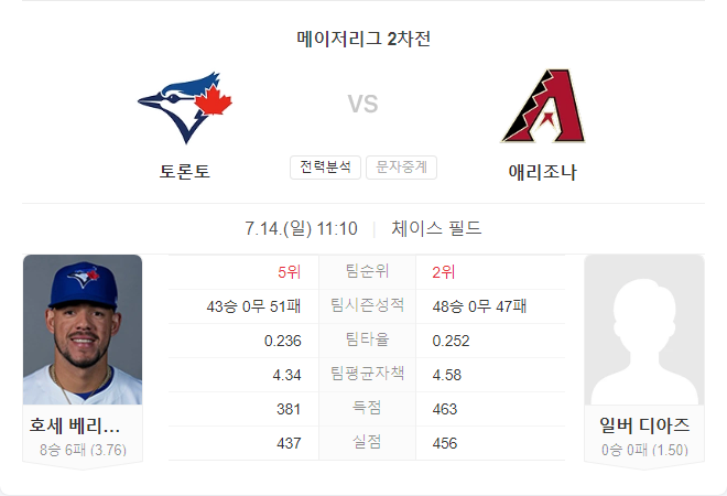 이번 경기는 토론토 블루제이스가 유리할 것으로 예상됩니다. 비록 애리조나의 신인 투수 일버 디아즈가 첫 경기에서 좋은 모습을 보였지만, 블루제이스는 그에 대한 분석 자료를 바탕으로 더 나은 대응을 할 수 있을 것입니다. 베테랑 투수 호세 베리오스가 선발로 나서며, 블루제이스는 최근 그의 등판에서 좋은 성적을 기록하고 있습니다. 베리오스의 경험과 블루제이스의 강력한 타선이 결합되어 승리할 가능성이 높습니다.