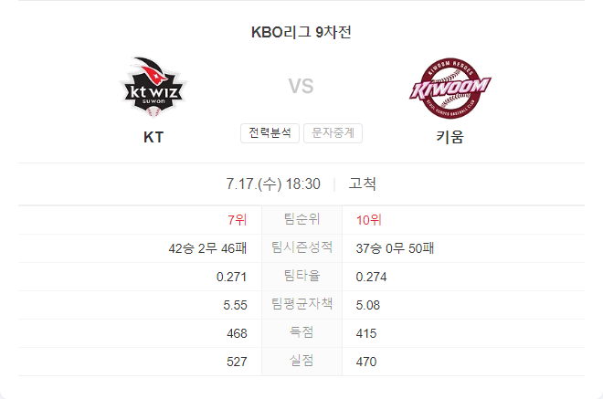 | 7월 17일 KBO 프로야구 삼성 라이온즈 VS KT 위즈 타카짱의 경기 예측 분석 (0) | 2024.07.16 |