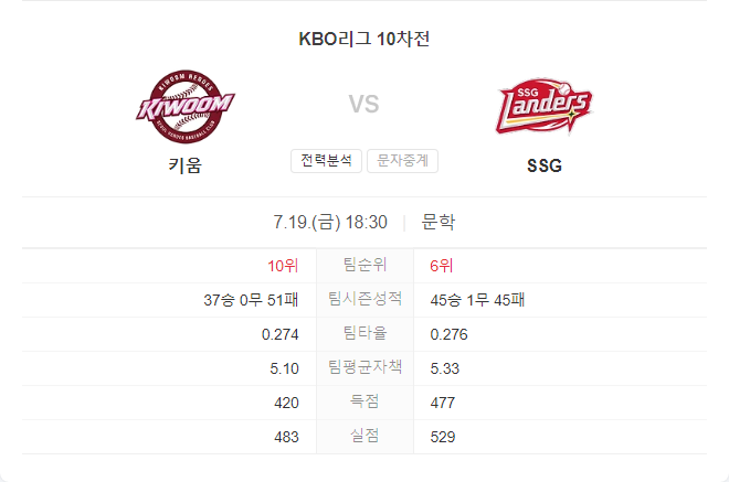 키움 히어로즈와 SSG 랜더스의 경기는 양 팀 모두 강력한 전력을 보유하고 있어 치열한 승부가 예상됩니다. SSG 랜더스는 평균자책점과 타율에서 우위를 보이고 있으며, 키움 히어로즈는 중심 타선의 강력한 타격을 바탕으로 득점을 노릴 것입니다. 양 팀의 최근 성적과 선수들의 컨디션을 고려할 때, 이번 경기는 접전이 예상되며, SSG 랜더스가 근소한 차이로 승리할 가능성이 높습니다.
