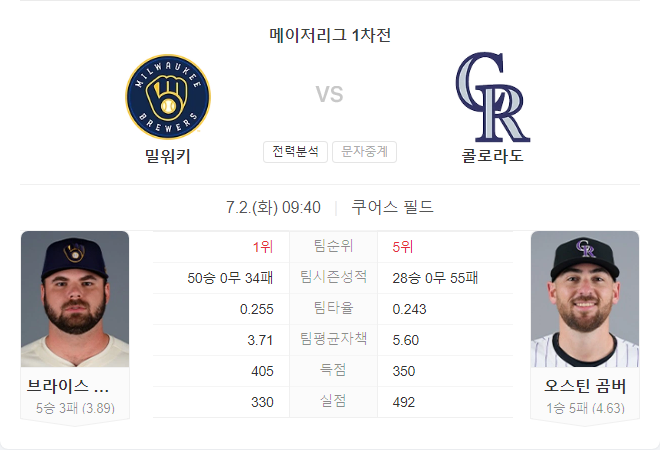 이번 경기는 밀워키 브루어스가 우세할 것으로 예상됩니다. 브루어스는 강력한 공격력과 안정적인 투수진을 보유하고 있으며, 윌슨이 최근 좋은 활약을 보이고 있습니다. 반면, 로키스는 투수진이 매우 불안정하며, 공격력에서도 큰 강점을 보이지 못하고 있습니다. 따라서 이번 경기는 밀워키 브루어스가 승리할 가능성이 높습니다.