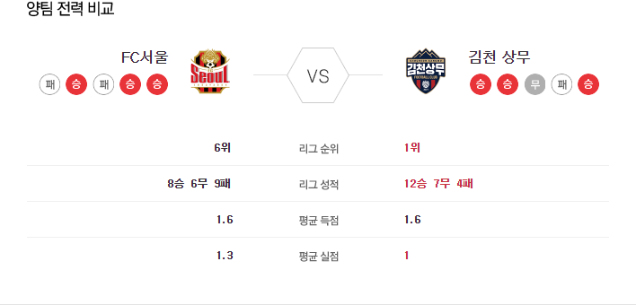 7월 21일 K리그 서울FC VS 김천 타카짱의 경기 예측 분석
