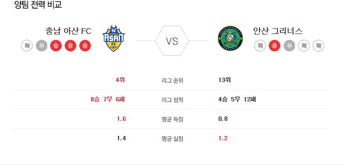 7월 21일 K리그2 충남아산 VS 안산 타카짱의 경기 예측 분석