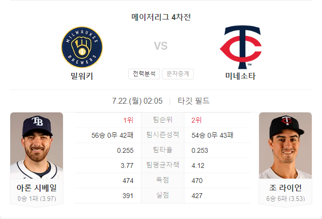 이번 경기는 미네소타 트윈스의 승리가 예상됩니다. 조 라이언의 홈 경기에서의 안정적인 투구와 트윈스의 강력한 공격력을 고려할 때, 트윈스가 승리를 가져갈 가능성이 높습니다. 반면, 시발레의 원정 경기에서의 부진한 성적을 고려하면 브루어스가 고전할 가능성이 큽니다.