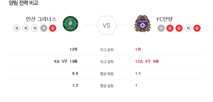 안양의 핸디캡 승리가 예상됩니다. 안산은 후방에서의 빌드업을 시도하겠지만, 이로 인해 실수가 발생할 가능성이 높습니다. 반면 안양은 강력한 공격력과 전방 지향적인 스타일로 경기를 주도할 것입니다. 안양의 공격적인 플레이가 성공을 거둘 것으로 보입니다.