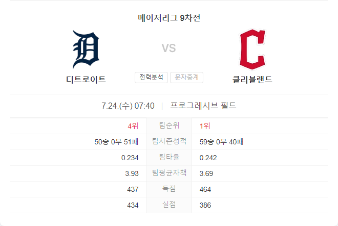 이번 경기는 양 팀의 불안정한 투수진을 고려할 때 타선의 대결이 될 가능성이 큽니다. 디트로이트 타이거즈는 최근 타선에서 좋은 모습을 보이고 있으며, 클리블랜드 가디언스는 홈 경기의 이점을 살려 타선이 강력한 모습을 보일 것입니다. 따라서 클리블랜드 가디언스가 근소한 차이로 승리할 가능성이 높습니다.