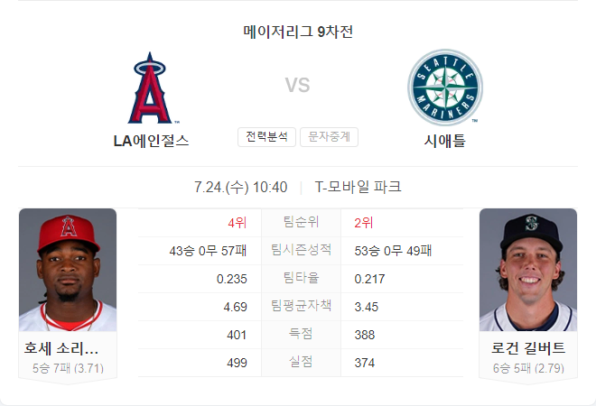 이번 경기는 시애틀 매리너스가 유리할 것으로 예상됩니다. 시애틀은 최근 홈경기에서 LA 에인절스를 상대로 좋은 성적을 거두고 있으며, 로건 길버트의 안정적인 투구가 큰 도움이 될 것입니다. 반면, LA 에인절스는 주요 선수들의 부상으로 인해 어려움을 겪고 있으며, 호세 소리아노의 선발 등판이 팀에게 큰 부담이 될 수 있습니다. 따라서 이번 경기는 시애틀 매리너스가 승리할 가능성이 높아 보입니다.