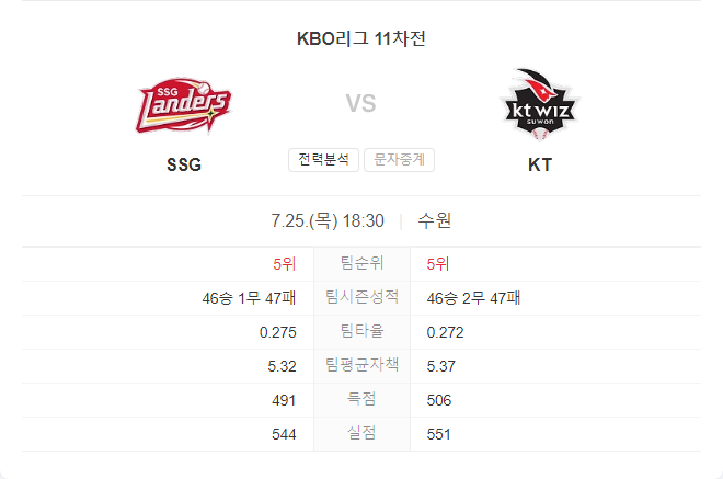이번 시즌 SSG 랜더스와 KT 위즈의 맞대결에서는 5승 5패로 팽팽한 승부를 보였습니다. SSG는 중심타선의 WAR 합산이 6.73으로 KT(3.11)보다 우세하며, 특히 타율과 득점에서 강점을 보이고 있습니다. 반면, KT는 테이블세터와 하위타선에서 SSG보다 우세한 WAR을 기록하고 있습니다.