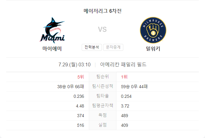 | 7월 29일 MLB 미네소타 트윈스 VS 디트로이트 타이거즈 타카짱의 경기 예측 분석 (0) | 2024.07.28 |