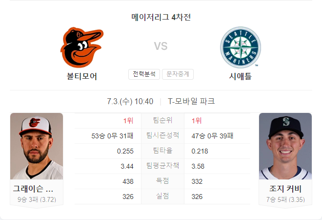 이번 경기는 양 팀 모두 강력한 투수를 내세우며, 치열한 승부가 예상됩니다. 볼티모어는 그레이슨 로드리게스를 선발로 내세우며, 그는 9승 3패, 3.72 ERA, 1.24 WHIP, 89개의 삼진을 기록하고 있습니다. 시애틀은 조지 커비를 선발로 내세우며, 그는 7승 5패, 3.35 ERA, 0.97 WHIP, 96개의 삼진을 기록하고 있습니다.