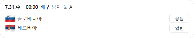 7월 31일 올림픽 남자배구 슬로베니아 VS 세르비아 타카짱의 경기 예측 분석