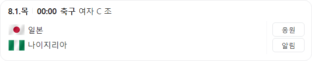 7월 31일 올림픽 여자축구 일본 VS 나이지리아 타카짱의 경기 예측 분석