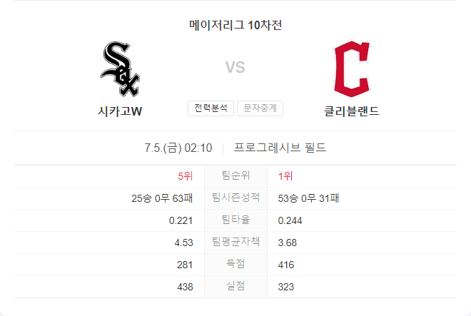 이번 경기는 클리블랜드 가디언스가 유리할 것으로 예상됩니다. 화이트삭스는 전체적으로 약한 모습을 보이고 있으며, 특히 원정 경기에서 8승 34패로 매우 부진합니다. 반면, 가디언스는 벤 라이블리의 안정적인 피칭과 호세 라미레즈의 강력한 타격을 바탕으로 승리를 가져갈 가능성이 높습니다.