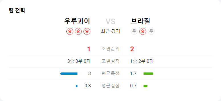 이번 경기는 우루과이가 브라질을 상대로 우위를 점할 것으로 예상됩니다. 우루과이는 최근 브라질을 상대로도 승리한 경험이 있으며, 현재 대회에서도 강력한 경기력을 유지하고 있습니다. 반면 브라질은 공격력과 수비에서 모두 문제를 안고 있어 어려움을 겪을 것으로 보입니다.
