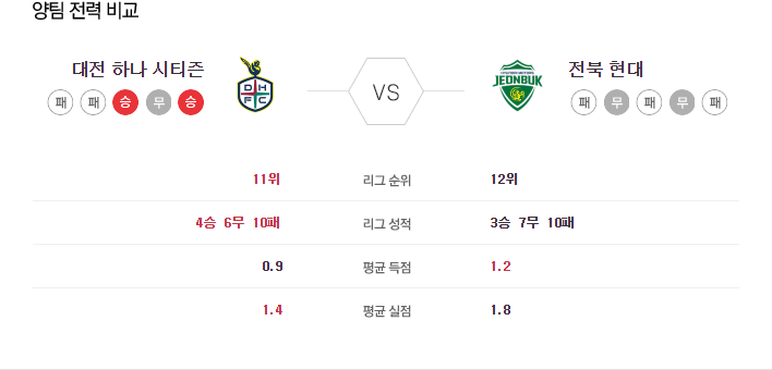 7월 7일 K리그 대전 VS 전북 타카짱의 경기 예측 분석