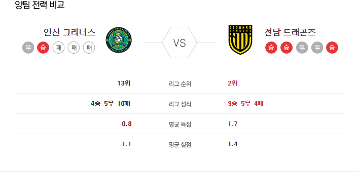 7월 7일 K리그2 안산 VS 전남 드래곤즈 타카짱의 경기 예측 분석