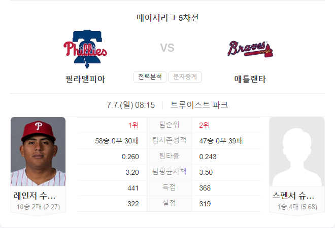 필라델피아 필리스는 수아레즈의 안정적인 투구와 강력한 타선을 바탕으로 애틀랜타 브레이브스를 상대로 승리할 것으로 예상됩니다. 반면, 브레이브스는 투수 슈웰렌바흐의 부진으로 인해 어려움을 겪을 것으로 보입니다.
