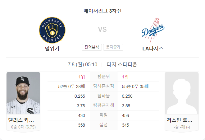 다저스는 이번 경기의 선발 투수를 아직 발표하지 않았지만, 팀의 불펜이 강력하기 때문에 큰 문제는 없을 것으로 보입니다. 다저스의 팀 ERA는 리그 6위에 해당하는 3.56을 기록하고 있습니다.