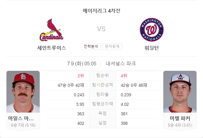 워싱턴 내셔널스는 42승 47패로 시즌을 진행 중이며, 선발 투수로 신예 미첼 파커가 나섭니다. 파커는 이번 시즌 5승 4패와 3.61의 ERA를 기록하며, 특히 홈 경기에서 뛰어난 피칭을 보여주었습니다.