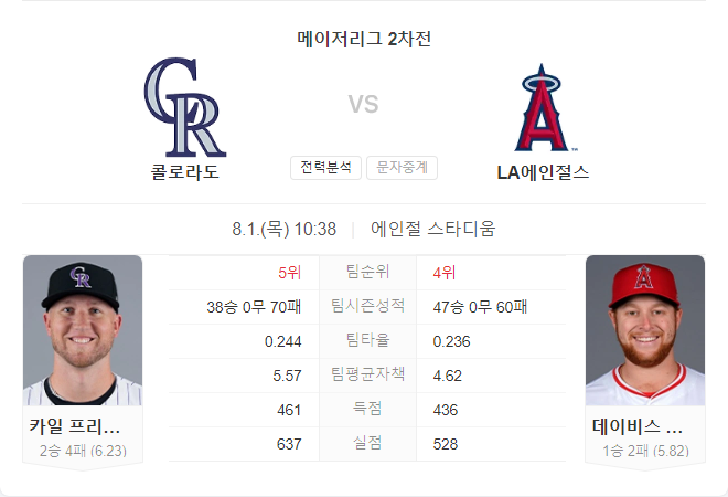 8월 1일 MLB 콜로라도 로키스 VS LA 에인절스 타카짱의 경기 예측 분석